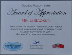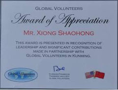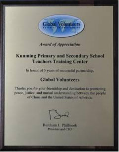 美国环球志愿者(Global Volunteers)是一个非政府、非宗教、非盈利的国际组织,目前在全世界20多个国家开展活动,1995年首次派遣志愿者到中国西安服务。受昆明市人民政府的邀请,该组织自2005年8月先后派遣18批187人到昆明培训中小学英语教师1208人。