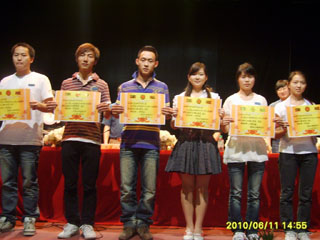 表彰会上,系党总支书记李海雁老师首先代表系党总支、系行政对全体教职工富有成效的工作表示诚挚的感谢!向在各个方面取得进步的全体同学表示衷心的祝贺!李书记对受到表彰的同学提出要倍加珍惜取得的荣誉,虚心向周边同学学习,认真查找自己各方面的不足,自觉的纠正自己的行为,再接再厉、拼搏进取,争取不断进步的要求,并号召全体同学向他们学习。接着,系副主任申时凯老师宣布了我系同学在2009-2010学年度参加省市、学院各种学术、科技、文体活动的获奖名单,系党总支副书记王亚越老师宣布了我系心理健康教育主题班会、心理征文比赛及网页设计大赛获奖名单。在2008级电子商务班毕海旭同学代表获奖同学作了发言后,系领导为获奖的集体和个人代表颁发了奖项,并合影留念。