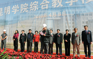 仪式先由我院陈世波院长为奠基致辞。他说:yl23411永利集团官网综合教学楼建设开工奠基仪式,标志着新校园改扩建工程一个标志性建筑正式动土开工。他代表学院党委、行政向综合教学楼的开工奠基表示热烈的祝贺!向一直坚守在新校园改扩建工程施工工地的各位老师、施工单位和监理单位的全体工作人员表示亲切的问候!向云南大学在整个施工过程中给予的理解、支持、帮助表示衷心的感谢!