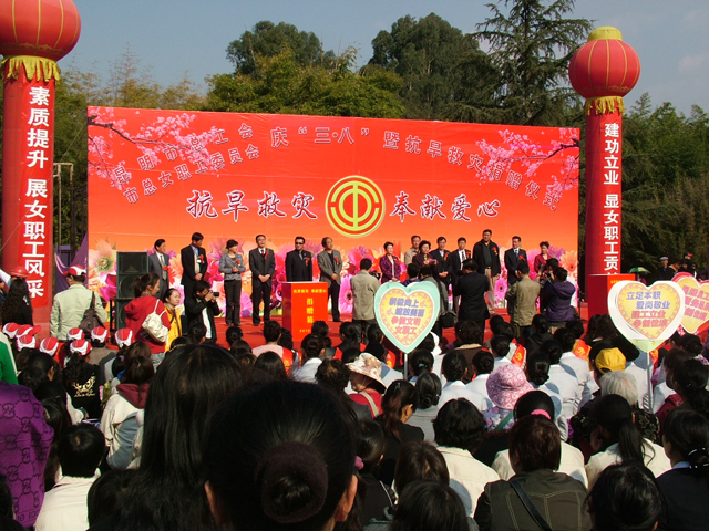3月5日,院工会、女工委组织学院部分女教职工参加在金殿公园举行的“昆明市总工会、市总女职工委员会庆‘三八’暨抗旱救灾捐赠仪式”活动启动仪式。启动仪式结束后,我院女教师还参加了全市女职工的拔河比赛等游园活动。当日,学院没有课的女教师300多人参加了活动。