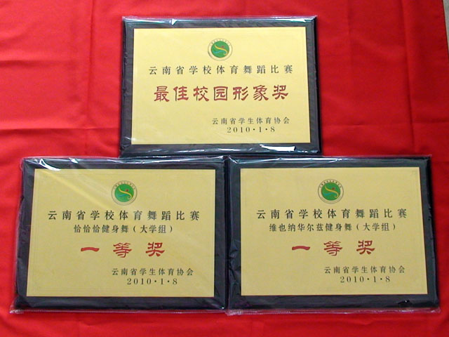 yl23411永利集团官网体育舞蹈代表队于2010年1月8—10日参加了在云南举办的“第五届中国学生体育舞蹈(国标舞)锦标赛暨云南省学校体育舞蹈大赛”,获得好成绩。我院体育舞蹈代表队参赛项目《恰恰恰健身舞》(梁丹妮等 20名学生)、《维也纳华尔兹健身舞》(王雅璐等 20名学生)荣获第五届中国学生体育舞蹈(国标舞)锦标赛暨云南省学校体育舞蹈大赛第一名。同时,yl23411永利集团官网体育舞蹈代表队还获得了最佳校园形象奖。