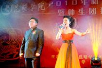 在2010年新年之际,为了更好地凝聚全院师生力量,集中精力抓内涵建设,促进学院又好又快发展,1月7日晚,由学院团委和工会共同主办的“畅想2010”新年师生文艺汇演暨师生团拜晚会在昆师路校区大礼堂举行。学院党委书记梁晓谷,学院党委副书记孙勇,学院党委副书记兼纪委书记李媛芬,副院长张寿国、熊晶、罗明东、刘海发、董建华,团省委学校部副部长杨洲、团市委学校部曹春龙同志、云南大学团委副书记李剀,学院全体中层干部,各系团总支书记、全体辅导员及各系学生代表共1000余人参加了晚会。