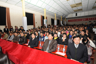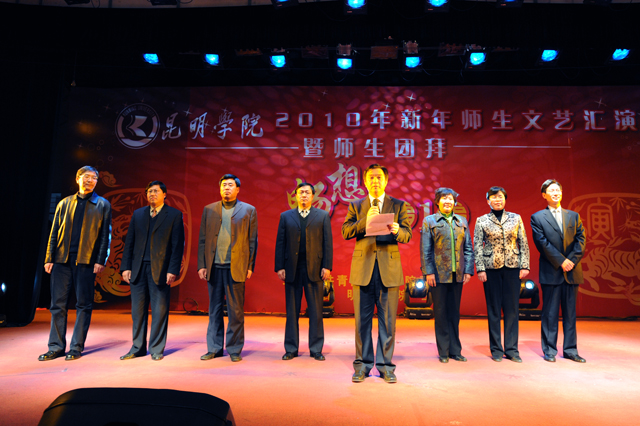 梁晓谷书记代表学院领导班子致辞,他指出,在过去的一年,学院以建设现代化综合性应用型本科大学为目标,按照超常规跨越式追赶型发展的思路,抢抓机遇,争先进位,努力把学院“规模做大、实力做强、学科做全、专业做优、人才做壮、科研做精、品牌做响、校园做美”,为把学院建设成为“国内知名、省内一流”本科大学励精图治,不断迈进。去年,我院的学科建设、科研工作、学术研究和技术研发的各项成果指标都在不断提高,在省内外的影响进一步扩大;对外交流与合作更趋于活跃,立足昆明、研究昆明、服务昆明,结合各系特色与专长服务地方社会经济发展的意识与实力不断增强。我们利用学习贯彻落实科学发展观活动和学习十七届四中全会精神的契机,全面推进全院的思想政治工作和各级党组织建设。在教育思想大讨论中逐步形成共识,凝聚了人心,形成了合力。学院审时度势,提出了全面实施战略转移,集中精力抓内涵建设,加快提升学院核心竞争力的发展思路。省委、省政府《关于深化改革大力发展高等教育的决定》为2010年我们的工作描绘了宏伟蓝图,昭示着新的历史性的跨越。新的一年,在邓小平理论、“三个代表”重要思想和科学发展观的指导下,在各级党委政府的正确领导下,在全校师生员工和离退休同志的支持下,我们将以崭新的面貌走进2010年。