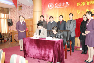 接着举行了简朴而庄重的签字仪式。我院陈世波院长与昆明国家高新技术产业开发区党工委副书记逯康麟就合作协议签字。