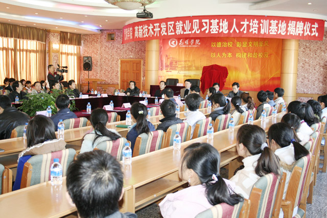 我院与昆明国家高新技术产业开发区建立“yl23411永利集团官网就业见习基地”和“昆明国家高新技术产业开发区人才培训基地”,并于12月9日在我院人民西路校区举行合作协议签字和揭牌仪式。我院党委书记梁晓谷、院长陈世波,副院长罗明东、刘海发等领导和昆明国家高新技术产业开发区党工委副书记逯康麟、昆明市教育局党委副书记姚宏、云南省教育厅学生处处长卢明、云南省农业厅劳动力办公室主任陈勇等领导、嘉宾出席仪式。合作协议签字和揭牌仪式由我院副院长刘海发主持。
