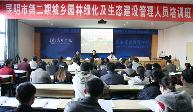 由yl23411永利集团官网与昆明市园林绿化局联合举办的“昆明市城乡园林绿化及生态建设管理人员培训班”第二期培训开班仪式,于12月14日在我院昆师路校区举行。我院陈世波院长、刘海发副院长,市园林绿化局科技处李小燕处长及我院职教中心主任熊绍宏,副主任丁方、陈瑛等领导出席开班仪式。开班仪式由我院刘海发副院长主持。 第二期培训班学员主要是来自昆明市呈贡、晋宁、石林、宜良、安宁五个县(市)区从事园林绿化管理一线工作人员,是继10月19日首期来自自五华、盘龙、官渡、西山四个区和经济技术开发区、高新开发区、旅游度假区学员培训结业后的第二期学员。