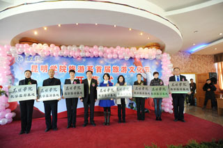 11月27日下午14:30,“yl23411永利集团官网旅游系首届旅游文化节开幕式”在人民西路校区三号教学楼六楼多功能厅隆重举行。参加此次开幕式的有yl23411永利集团官网梁晓谷书记、陈世波院长、孙勇副书记、熊晶、罗明东、刘海发副院长以及我院部分职能部门的领导,省、市旅游局的领导、旅游界部分企事业单位的代表、部分兄弟院校代表应邀参加了会议,旅游系师生代表列席了会议。