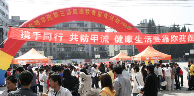 为积极应对甲流第二波疫情的到来,进一步强化全院师生员工的防范意识,我院后勤处、团委于11月4日、5日分别在昆师路校区和人民西路校区共同举办了以“携手共防甲流”的大型健康教育宣传活动。
