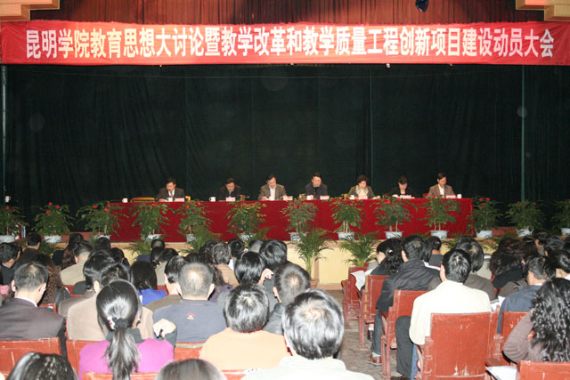 为深入学习贯彻党的十七届四中全会精神,认真学习《中共云南省委、云南省人民政府关于深化改革,大力发展高等教育的决定》,将科学发展观整改措施落在实处,全面落实学院党委作出2009——2010学年“全面实施战略转移,集中精力抓内涵建设,努力提升学院核心竞争力”的工作重点,11月6日下午,我院在昆师路校区大礼堂召开“教育思想大讨论暨教学改革和教学质量工程创新项目建设”动员大会。学院领导、中层干部、教研室主任,教授、青年教师代表,学生代表、教职工代表,教学督导组代表、民主党派代表共340余人参加动员大会。会议由学院党委梁晓谷书记主持。 动员会上,罗明东副院长首先作了《加强建设,整体推进,重点突破,发展特色,提高质量》的专题发言。他就学院的教学质量建设与教学改革问题作了全面的分析、总结,提出了具体的建设改革思路、措施和要求。他表明:在现有学院改革与发展的基础上,进一步推进教学工作,提高教学质量的基本思路是:加强建设,整体推进,重点突破,发展特色,全面提高教学质量。主要措施:一是准确定位,把握主线;二是抓教学基本建设,把握大学标准,加强现代大学制度建设,规范教学工作;三是不断改革创新,促进教学特色发展;四是以人为本,加强教学管理,奠定学生发展基础;五是以“三高一优一突出”的要求抓好师资队伍建设。同时要求在教学工作中应处理好几个关系:一是处理好全面提高与突出重点之间的关系;二是处理好教学工作与科研工作之间的关系;三是处理好规范与创新性之间的关系;四是处理好综合性与应用性之间的关系;五是处理好统一性与多样性之间的关系;六是处理好领导带头与以老师为主之间的关系;七是处理好理论性与实践性之间的关系;八是处理好目标管理和过程管理之间的关系;九是处理好正常教学工作与评估工作之间的关系。 陈世波院长就教育思想大讨论活动作了《统一思想、提高认识,为开创学院内涵建设的新局面而努力》的重要讲话。他从国际、国内及我院的实际,以详实而富有代表性的案例,全面、深刻地分析了当前高等教育的现状、形势和存在的问题,诠释了我院深入开展教育思想大讨论的重要意义。他指出:开展教育思想大讨论,是推动教育思想、教育观念、教育理念转变和深化学院改革、加快学院发展的有效形式。开展这次教育思想大讨论,不是权宜之计,不搞形式主义,而是有计划、有组织、有重点、目的明确、任务具体的在全校范围内开展的一次现代教育思想的学习教育活动,是学院总体发展战略逐步展开过程中的一个重要方面和环节,是最近一段时期学院工作的重点和主要任务之一,至少要用一两年的时间,通过广泛深入的学习和讨论,切实把全校教职工的思想认识统一和提高到建设现代化本科大学所应有的高度,切实用现代教育思想武装全校教职工的头脑,切实把工作重点转变到提高教育质量和办学效益上来,澄清一些似是而非的模糊认识,确立一些创建高水平应用型本科大学必不可少的教育思想、教育观念、教育理念,为积极、稳妥、全面推进学院内涵建设和跨越式发展奠定坚实的思想基础。通过讨论活动要使每一位教职工有所触动和认识,要树立一批教书育人的先进典型,要出成果,要把大讨论转变为学院的大发展。希望同志们思想上重视、认识上清醒、行动上到位,切实把这次教育思想大讨论不断引向深入,取得实效,达到预期的目的。 梁晓谷书记最后作重要讲话。他强调:本次会议是全面落实十七届四中全会精神和学院党委作出2009——2010学年“全面实施战略转移,集中精力抓内涵建设,努力提升学院核心竞争力”工作重点的重要举措。全体干部、师生要从学院内涵建设发展的高度,充分认识开展教育思想大讨论与教学改革和教学质量工程创新项目建设的重要意义。梁书记还就教育思想大讨论活动中应把握的重点和内容作了进一步的阐述和要求:一是要转变观念,统一思想;二是找准问题,把握本质,要在大方向上把握好关键的东西,而不要在概念、细节上纠缠,关键要搞清楚一些基本问题,要紧紧围绕应用型本科大学要培养什么样的人和如何培养人这个根本问题来学习研讨。他同时要求各级组织和干部,明确责任、加强领导,各基层党政领导一把手为第一责任人,要精心组织,把学习贯彻党的十七届四中全会精神、教学科研等工作有机结合起来,提倡学术探讨无禁区、执行工作有纪律;整个活动中要认真总结经验成果,要在校园网上开设专栏进行宣传,并开展互动交流。 动员会后,学院领导和各单位将按照学院党政部署和要求,分阶段、有重点地围绕学院学习贯彻四中全会精神,推进内涵建设开展学习研讨活动。这将对学院进一步明确办学思想、办学目标产生重要的影响,为进一步落实市委、市政府将yl23411永利集团官网“品牌做优、学科做全、专业做强、人才做壮”的要求,推动学院办人民满意的大学具有重要的作用和意义。