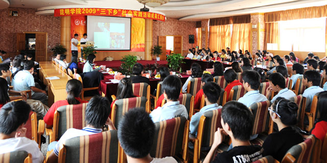 10月16日下午,院团委2009年“三下乡”社会实践活动成果汇报会在人民西路校区举行。团市委机关党总支书记王彦彦,团市委学校部部长栾丽华,学院党委宣传部张立新部长,教务处郝旭霞处长,机关党总支梁艳萍书记,保卫处方永昆副处长,学生处罗进副处长等出席了汇报会,会议由团委书记何昊宸主持。 我院本次“三下乡”根据党委宣传部、学生处、院团委联发的《关于开展yl23411永利集团官网2009年大学生暑期社会实践活动的通知》的文件精神,于7月上旬正式启动,历时7天。活动以“高扬爱国主义旗帜、服务科学发展大业”为主题,本着“讲求实效、就进就便、针对性强、辐射面广、安全第一”的原则,按照“全面动员、普遍参与、点面结合、重点突破”的要求,以系为单位,结合本系专业特色,学院共组织了6支志愿服务队到昆明周边县市区基层农村开展社会实践与志愿服务活动。 汇报会上,来自自机系、旅游系、生科系、经济系、计网系、政法系的老师和学生代表,分别对此次“三下乡”社会实践活动作了汇报与成果展示。各汇报系结合系部的专业特色,开展的实践活动形式多样、成果丰富,能够用理论指导实践,用调研成果服务农村、服务社会、服务昆明的实践活动。 党委宣传部部长张立新代表学院活动领导小组讲话肯定:6个系的汇报都反映出了此次社会实践主题突出,准备充分,各系领导和相关老师高度重视,积极支持,责任心强,有的亲自带领学生到农村指导调研服务;各系结合专业特长开展科学发展观政策、普法、科普、环保宣传,进行家电维修、爱心捐赠、社会调研、参观访问、劳动体验、文体活动等,既充分认识社会和乡情,也找正自己的角色位置,以我所能服务社会,为今后发展积累经验,为学院服务地方经济发展,锻炼培养了师生干部,宣传展示了学院办学实力和育人水平,与地方建立良好合作关系,做出实绩。衷心感谢团市委领导和相关处室领导的关心支持,衷心感谢6支小分队的系领导、老师、同学的艰苦努力和辛勤奉献。 会上,团市委机关党总支书记王彦彦作了重要讲话。王书记对我院的“三下乡”社会实践工作给予了充分肯定,她指出,我院的“三下乡”社会实践活动准备充分、成果丰富,特别是通过这次活动让同学们了解了社情民意,倾听到了基层人民群众的心声,找到了奋斗和努力的方向,确实增强大学生服务社会、报效祖国责任感和使命感,发现问题、分析问题、并解决问题的能力得到了进一步的提高,砥砺了品格、磨练了意志、收获了真知、陶冶了情操、树立了理想。这次社会实践活动既是一次同学们了解社会、服务社会的尝试,更是一次理论与实践相结合的马克思主义的第二课堂。 此次“三下乡”社会实践活动是学院团委认真学习贯彻十七大精神,深入开展学习实践的科学发展观活动的重要举措,也是加强和改进大学生思想政治教育、帮助大学生在实践中深刻理解科学发展观重大意义、发挥大学生人才智力优势、服务新农村建设的有效途径。相信此次活动的开展,将为大学生体验农村、融入社会搭建平台,为我院团学工作的不断推进和现代新昆明建设贡献力量。