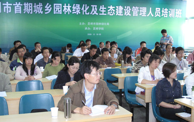 根据昆明市委、市政府提出“建设生态昆明绿色家园”的要求及昆明市“2009年城乡园林绿化及生态建设工作现场会”精神,经市政府批准,由yl23411永利集团官网与昆明市园林绿化局联合举办的“昆明市城乡园林绿化及生态建设管理人员培训班”开班仪式,于10月19日在我院昆师路校区举行。我院党委书记梁晓谷,昆明市政府副秘书长周峰越,市园林绿化局局长张家仁、副局长汪天祥等领导出席开班仪式。开班仪式由我院刘海发副院长主持。 参加本次开班仪式的学员有来自五华、盘龙、官渡、西山四个区和经济技术开发区、高新开发区、旅游度假区60余人从事林绿化管理一线工作人员。该培训将分期分批对全市范围内从事园林绿化建设和管理部门的企、事业从业人员进行短期与长期相结合的基础业务培训。 培训旨在努力提升我市城乡园林绿化管理人员的业务素质和管理水平,适应我市“建设生态昆明、绿色家园”的目标要求,把昆明建设成为“森林式、园林化、环保型、可持续发展的高原湖滨生态城市”。这既是市政府贯彻落实科学发展观的具体要求,也是我院发挥教学科研优势,积极为昆明谋求经济社会跨越大发展做贡献的现实需要。 梁书记出席开班仪式并作讲话。梁书记从贯彻昆明市2009年城乡园林绿化及生态建设工作现场会的精神、昆明市城乡园林绿化的基本情况和举办本次培训班的背景等方面,阐述了举办城乡园林绿化及生态建设管理人员培训的重要意义和作用。同时,梁书记向学员们提出了三点希望:一是希望认真对待培训工作,带着问题、善于思考,安心、认真听好每一堂课;二是希望严格学习纪律,做到学习有考核、管理有制度;三是希望用学到的理论指导实际工作,在岗位实践中不断向市园林绿化局和我院职教中心反馈宝贵建议,提出希望教师教些什么?怎么教的要求。 周副秘书长受陈勇副市长的委托代表市政府向首期城乡园林绿化及生态建设管理人员培训开班表示祝贺。他强调:今年昆明市城乡园林绿化及生态建设的主要任务是突出总量扩张和质量提升“两个重点”。他希望各位学员珍惜学习机会,培训结束后回到工作岗位上,一定要按市委、市政府的要求,按照昆明市城乡园林绿化的总体规划和工作部署,精心组织,真抓实干,充分发挥园林绿化管理人员的骨干作用为全市经济社会又好又快发展作出新的更大的贡献! 开班仪式上,张局长从我市园林绿化发展状况和个人体会等方面谈了加强城乡园林绿化及生态建设管理人员培训的必要性。他透露,今后昆明市的每一名园林绿化管理人员都必须经过培训考核,持证上岗。 开班仪式结束后,与会领导和全体受训学员合影留念。