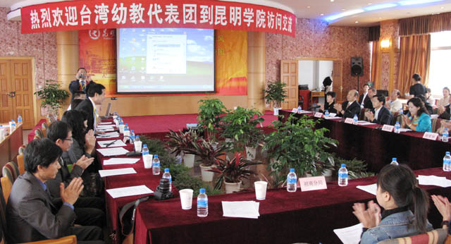 研讨会由昆明市台办主任段俐娟主持。昆明市教育局领导发言首先对台湾幼教联合总会的到来表示诚挚的欢迎,然后就昆明的教育大背景作了较详细的介绍。接着yl23411永利集团官网罗明东副院长对yl23411永利集团官网的建院情况,院系专业设置,未来发展方向,特别是学前教育系的发展做了重要发言。学前教育系领导唐敏副主任主要针对yl23411永利集团官网学前教育系的办学历史、专业特色、科研能力、与昆明市各幼教机构的合作等台湾同行们感兴趣的问题,作了深入而细致的介绍。同时台湾幼教联合总会涂会长也把台湾的幼教发展现状等信息作了交流。