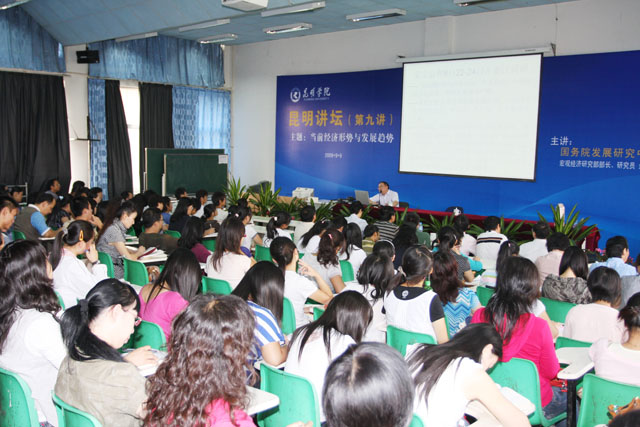 9月9日上午,学院邀请国务院发展研究中心宏观经济研究部部长余斌研究员莅临我院主讲《昆明讲坛》第九讲,主题为“当前经济形势与发展趋势”。讲座由yl23411永利集团官网副院长熊晶主持。《中国经济时报》驻云南记者站站长、记者、友好单位及我院部分师生约300人聆听了讲座。