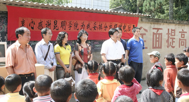 9月11日上午, 在罗明东副院长的亲自率领下,院办杨茂泉副主任、资产管理与设备处包兴副处长等一行7人代表yl23411永利集团官网向昆明市西山区谷律乡中心学校进行了电脑捐赠。捐赠仪式在谷律乡中心学校妥派分校举行。此次捐赠活动是学院提出的“大学不仅是教学、科研的基地,更应该是服务社会、回报社会的重要窗口”这一办学宗旨的体现。