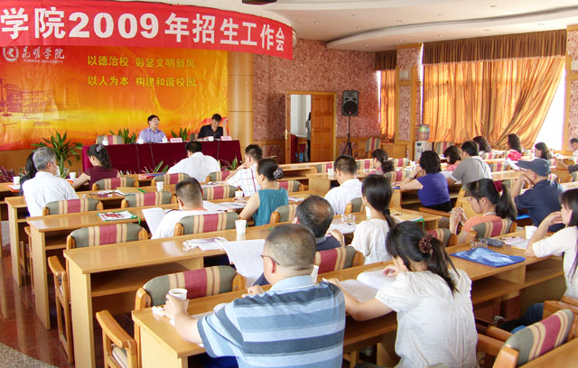 7月16日下午,我院在人民西路校区三号教学楼多功能厅举办了“yl23411永利集团官网2009年招生工作录取人员培训会议”。会议的主要内容是向参加2009年招生录取工作的全体人员传达教育部、云南省教育厅招生政策,对录取人员进行远程网上录取操作培训。会议由学院招生领导小组成员、招生就业处副处长杨跃同志主持。