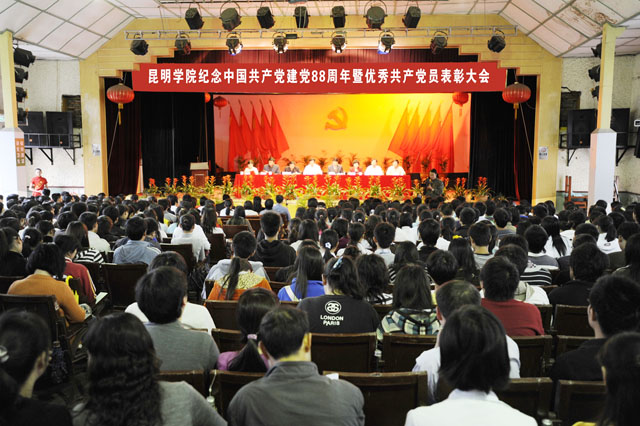 6月30日下午,yl23411永利集团官网庆祝中国共产党成立88周年暨优秀共产党员表彰大会在昆师路校区大礼堂隆重召开。学院党委委员、中层党员干部、各基层党组织的委员、在职及离退休党员代表、参加入党宣誓的新党员及入党积极分子代表等800余人欢聚一堂,共庆党的生日。大会由学院党委副书记、院长陈世波同志主持。