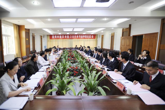原昆明市农业学校校长黄鹤平代表学院在论证会上作专业申报分析汇报。汇报从学科专业建设与发展的指导思想、学科专业建设的原则和目标、学校的硬件和软件现状、专业市场分析等方面入手向各位专家作了详实的分析汇报。对照教育部《高等学校本科专业设置规定》(教高[1999]7号)和《普通高等学校高职高专教育专业设置管理办法(试行)》(高教[2004]4号)的标准和条件,yl23411永利集团官网申报设置的农科类1个本科专业、6个专科专业已已基本具备开设条件,可以申报。