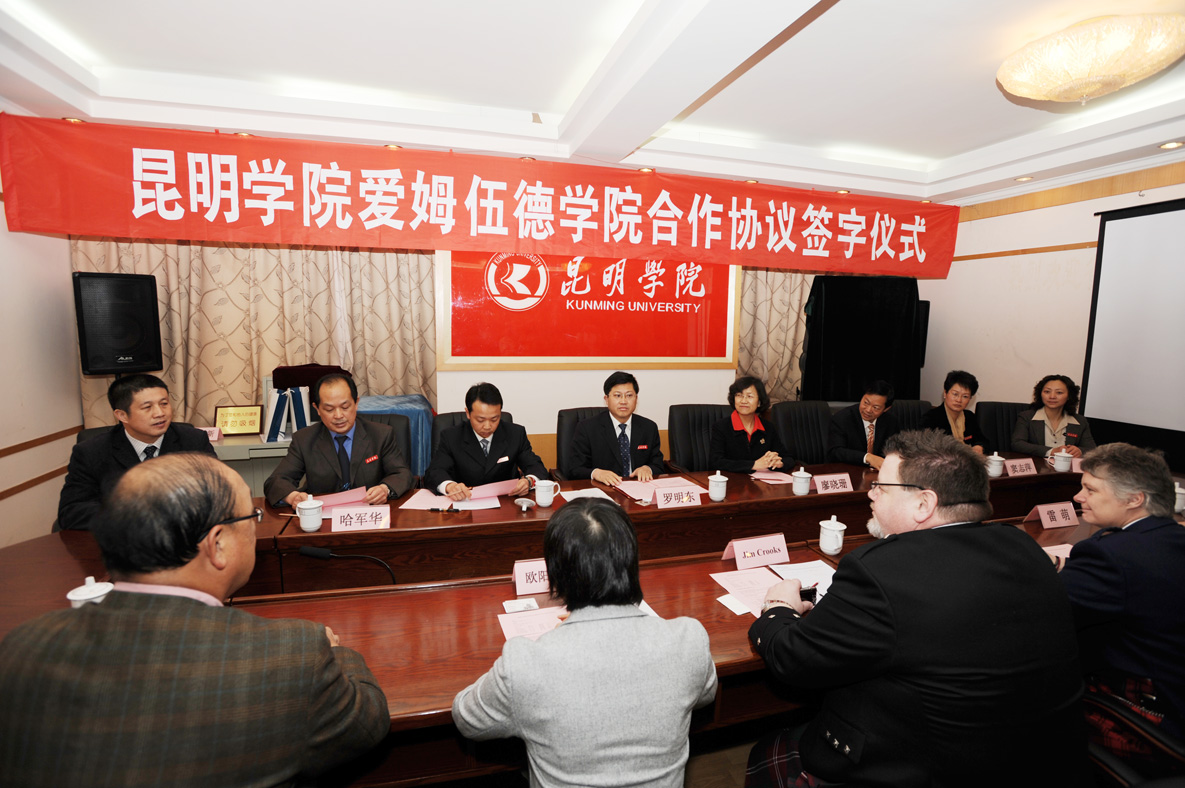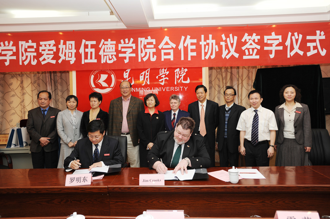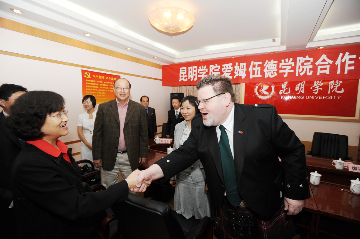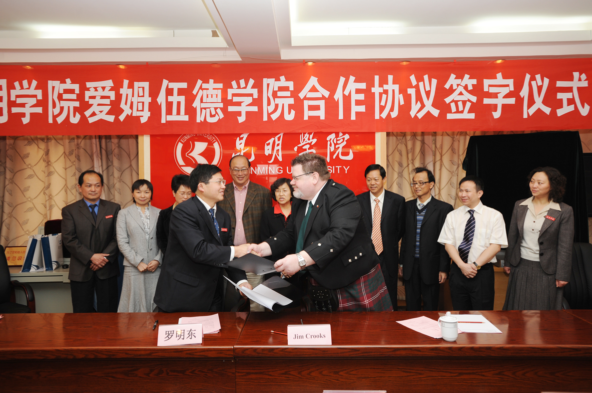 4月5日上午,英国苏格兰爱姆伍德学院与yl23411永利集团官网高尔夫教育合作协议签字仪式在我院举行。昆明市副市长廖晓珊女士、yl23411永利集团官网副院长罗明东教授博士、昆明市旅游局局长黄俊峰先生,苏格兰圣安德鲁斯爱姆伍德学院院长Jim Crooks先生、苏格兰圣安德鲁斯爱姆伍德学院国际交流中心主任Carol Borthwick女士、苏格兰——中国、亚太地区高尔夫教育合作项目总监欧阳艳凤女士、爱姆伍德中国办事处董事雷萌和我院旅游系、院办、对外交流合作处负责人参加了签字仪式。