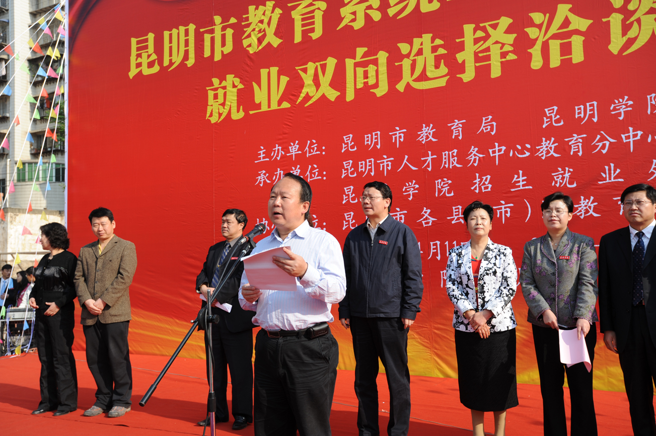 4月11日,由昆明市教育局、yl23411永利集团官网共同举办的“昆明市教育系统2009年毕业生就业双向选择洽谈会”在我院昆师路校区隆重举行。云南省高校工委副书记陶晴,昆明市人大常委会副主任杨丽,yl23411永利集团官网院长陈世波,学院党委副书记孙勇,副院长熊晶、罗明东和省教育厅学生处、省大中专毕业生就业服务中心,昆明市教育局、市人事局、市人才服务中心、昆明市各县(市)区教育局、人才教育分中心等相关部门领导出席洽谈会。