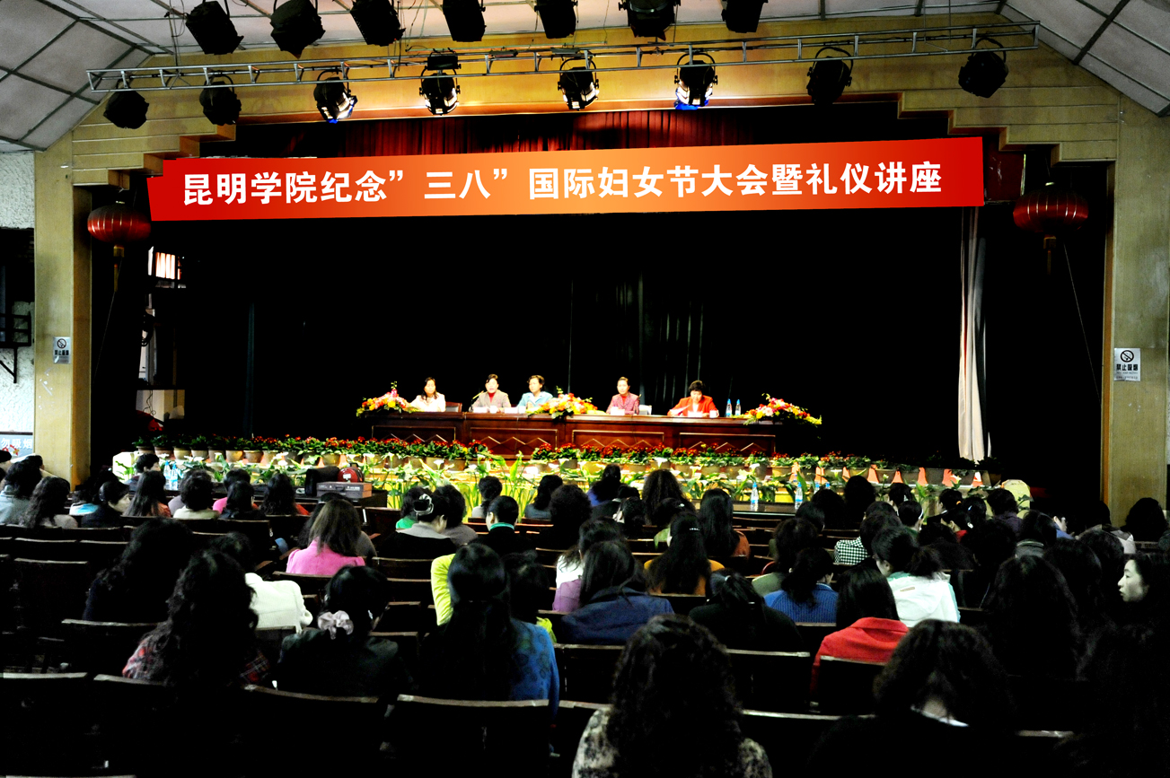3月5日上午,我院在昆师路校区大礼堂举行了yl23411永利集团官网2009年纪念“三八“国际劳动妇女节大会暨礼仪讲座。学院李媛芬副书记、熊晶副院长以及全院200多名女教职工参加了会议。会议由李媛芬副书记主持。会议邀请到云南艺术学院副院长潘红教授为大家做了“现代女性形象礼仪”的专题讲座。潘教授通过精彩讲授及大量图片的展示,为我们指明了现代女性在工作、生活中如何做到自信、优雅、智慧并重的秘诀,鼓励大家通过内在的文化和修养,成就外在优雅、自信的形象。