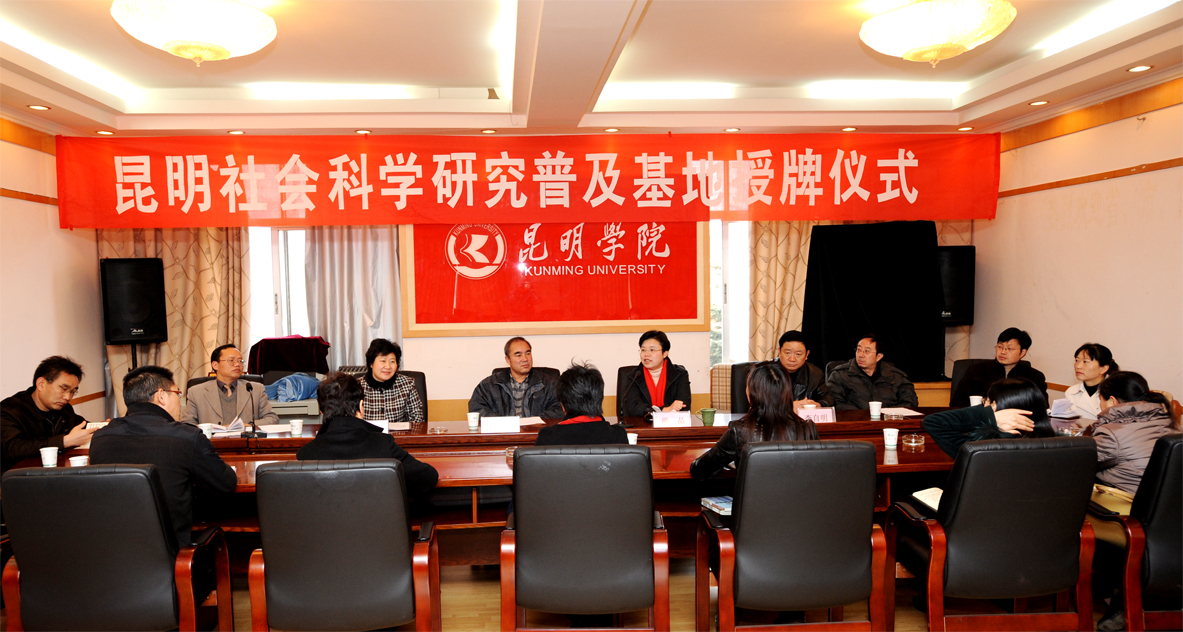 2008年12月26日上午,昆明市社科联在人民西路校区举行“昆明市社会科学研究普及基地”授牌仪式。出席授牌仪式的领导有:昆明市社科联龙东林主席、李自明副主席,yl23411永利集团官网李媛芬副书记、熊晶副院长。学院科研处、团委等部门和经济系、社科系、政法系、旅游系、历史系、思想政治理论课教研部等系部的领导和教师代表参加了仪式。仪式由学院昆明发展研究中心办公室管彦平主任主持。