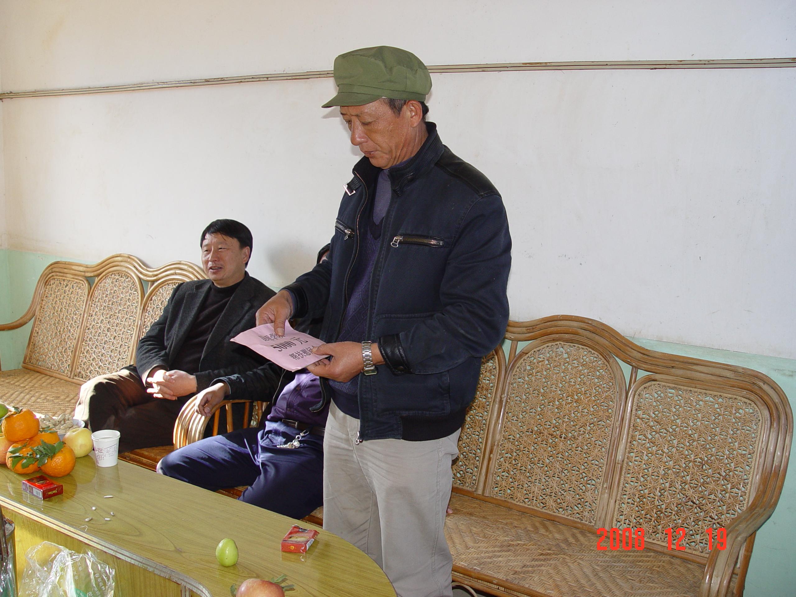 我院一行,受到了昌宁县卡斯镇党、政领导和昌宁县新农村建设工作组组长、邑林村委会干部的热烈欢迎,一下车就与各级领导干部亲切座谈,听取村委会领导对全村经济社会发展的汇报。邑林村委会还介绍了李扬同志的工作情况,对该同志近一年的工作表现给予了充分肯定。方永昆同志在了解了李扬同志的工作、学习、生活等情况后对李扬提出要求:一要认真学习党中央、国务院和省委、省政府关于推进新农村建设的一系列重要精神,明确新农村建设的目标要求,保证帮扶的正确方向。二要继续保持良好的精神状态和工作作风,深入搞好调查研究,了解农村基本情况,在当地党委、政府的领导下,积极帮助所驻村的村镇建设、促进所驻村的经济发展和精神文明建设。三要发扬艰苦奋斗的优良作风,扑下身子,树好形象,真心热情为农民群众办实事、办好事,同当地党委政府和群众建立真诚的友谊。最后,方永昆同志希望李扬持之以恒安心工作,珍惜最后一个月的时间,在驻村工作实践中总结基层经验,砥砺意志,增长才干,圆满完成帮扶工作,不辜负院党委的厚望。李扬表示他将在当地党委和政府的领导下虚心学习,努力工作,发挥自己的专业特长,为农村生产生活、经济建设贡献聪明才智,决不辜负院党委、院行政以及全处同志对他的殷切期望。最后,方永昆同志代表学院党委向邑林村党委转达了学院的慰问并转交了学院对新农村建设帮扶慰问金5000元。