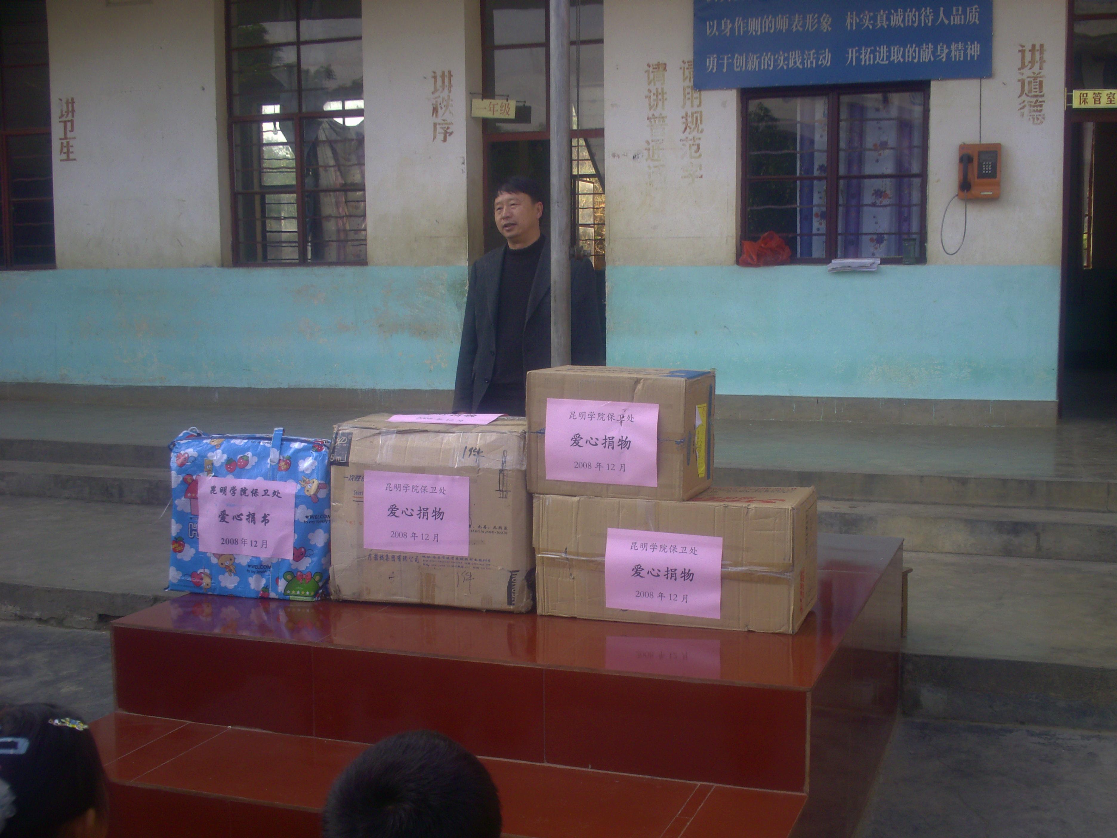12月18日,根据学院党委的统一部署,受院领导的委托,保卫处人民西路校区负责人方永昆同志带领孙丽同志和黎明祥同志一行三人代表学院党委和保卫处全体干部职工到云南保山市昌宁县卡斯镇邑林村看望本部门下派参加新农村建设的李扬同志。同时,支部向党员发出倡议:向邑林村希望小学自愿交纳一个月的特殊党费。倡议发出后,立即得到了全处14名党员干部的积极响应,纷纷捐款并购买了书籍、文具及体育用品,将爱心转变为实际行动积极支持新农村建设。一捆捆书籍和文具,饱含着全处党员干部的拳拳爱心和片片情意。