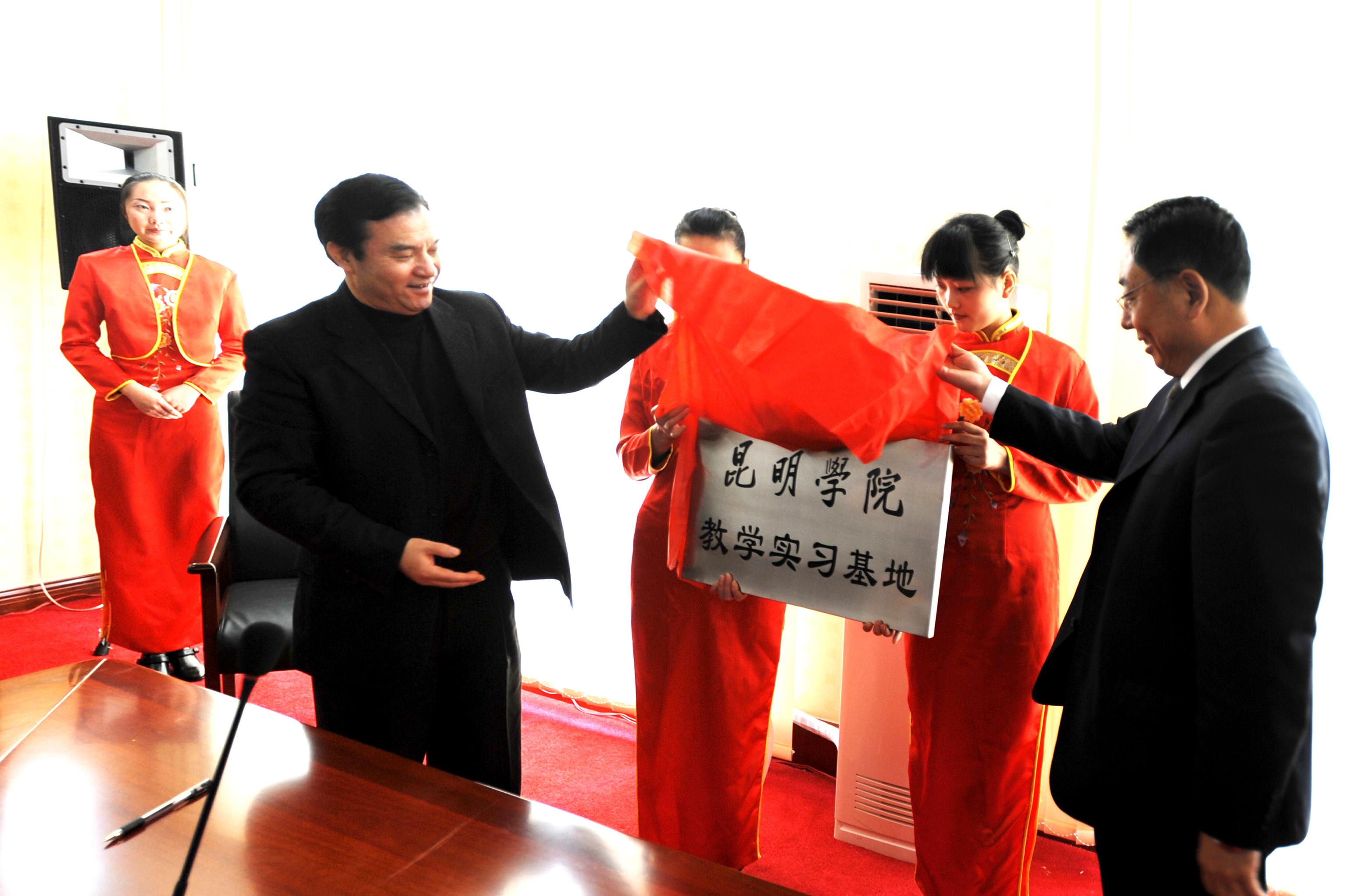 授牌仪式由兵器工业疗养院院长助理王维志同志主持。我院罗明东副院长与兵器工业疗养院蔡德珍书记签署了《yl23411永利集团官网与兵器工业昆明疗养院共建教学实习基地协议》。梁晓谷书记与兵器工业昆明疗养院的张永贵院长进行了揭牌仪式。仪式上陈世波院长和兵器工业昆明疗养院蔡德珍书记分别作了讲话。