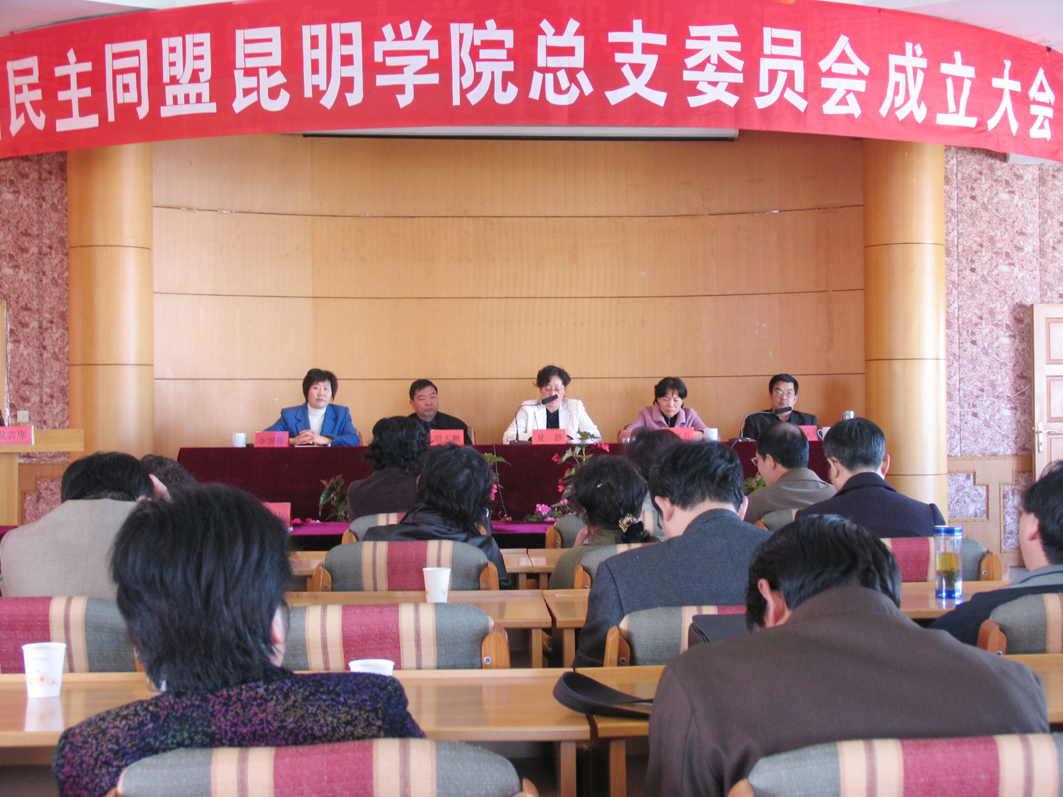 在民盟省委、昆明市委的领导和yl23411永利集团官网党委的指导下,在民盟yl23411永利集团官网全体盟员的努力下,2008年11月15日民盟yl23411永利集团官网第一届总支委员会成立大会胜利召开。出席大会我院应到会盟员82人,实到会与委托投票盟员63人。应邀出席成立大会的来宾有中共昆明市委统战部、民盟省委组织部、中共yl23411永利集团官网党委的领导及统战部的负责人,yl23411永利集团官网民革、民进、致公党、九三学社的代表也应邀出席了大会。