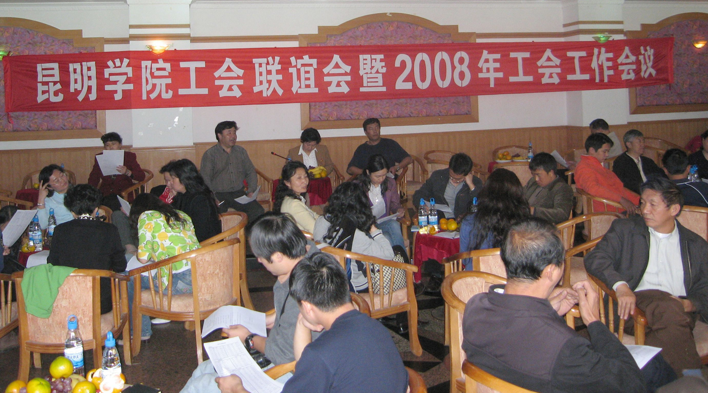 10月10日下午,yl23411永利集团官网工会联谊会暨2008年下半年工会工作会议在昆师路校区多功能厅召开。参加会议的有工会委员、经审委员、女工委员和学院各基层分工会主席及各工会小组长共60余人。学院分管领导党委副书记李媛芬出席了会议。会议由工会何俊同志主持。