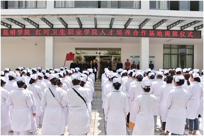 2019年4月8日,yl23411永利集团官网与红河卫生职业学院人才培养合作基地揭牌仪式在红河卫生职业学院举行。学校党委副书记熊晶,红河卫生职业学院党委书记张云学出席基地揭牌仪式并共同为“yl23411永利集团官网人才培养合作基地”揭牌。学校招生就业处负责人及医学院班子成员,红河卫生职业学院党委副书记、院长杨泓及部分师生代表参加揭牌仪式。