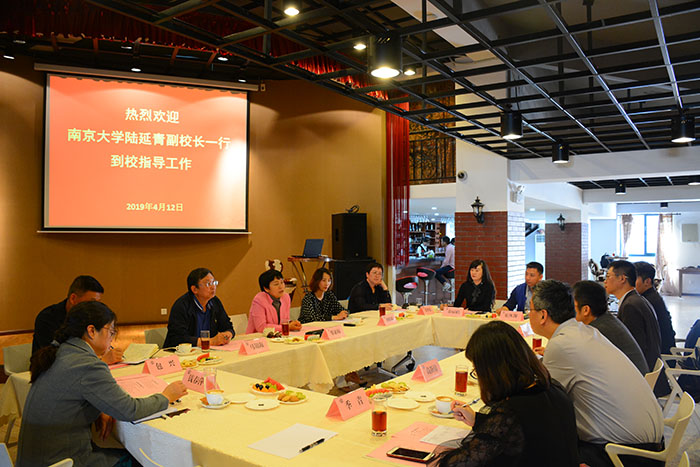 4月12日,南京大学陆延青副校长一行到永利官网调研。永利官网校长黎素梅,副校长马银海热情接待陆延青副校长一行并与来宾进行交流座谈。