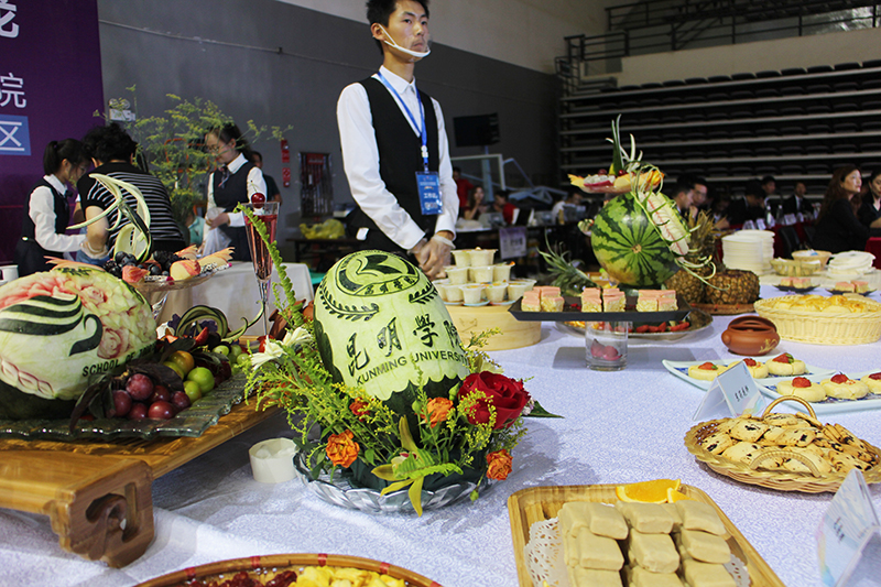 当晚比赛结束后,大赛组委会还举行“体育舞蹈沙龙”活动,邀请与会领导、嘉宾、裁判组、竞赛组、明星选手等出席,鉴赏yl23411永利集团官网旅游学院、美术与艺术设计学院学生分别带来的专业技能茶艺、果盘设计、酒水、冷餐和刺绣、雕刻、瓷器等手工艺术品,并进行相关文化交流。