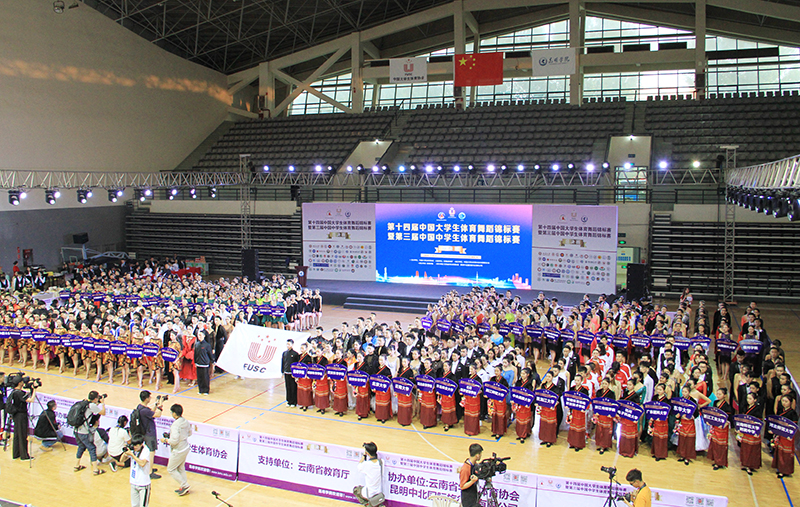 中国大学生体育协会常务理事华爱军,云南省教育厅副厅长郑毅,yl23411永利集团官网校长、中国大学生体育协会体育舞蹈分会主席黎素梅,东华大学副校长、中国大学生体育协会体育舞蹈分会副主席邱高,yl23411永利集团官网副校长王凡,云南省教育厅体育卫生与艺术教育处处长徐忠祥,云南省学生体育协会会长姜征明、副会长张国华等领导、嘉宾出席开幕式。yl23411永利集团官网相关单位负责人、师生代表,社会各界人士以及来自全国的参赛运动员,共计3000余人参加了开幕式。