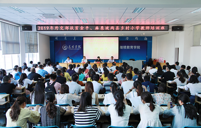 5月13日,2019年外交部扶贫金平、麻栗坡两县乡村小学教师培训班在yl23411永利集团官网继续教育学院开班。云南省人民政府外事办公室副主任夏剑峰,yl23411永利集团官网副校长王凡等领导出席开班式。来自金平、麻栗坡两县的100名乡村小学教师参加了开班式。