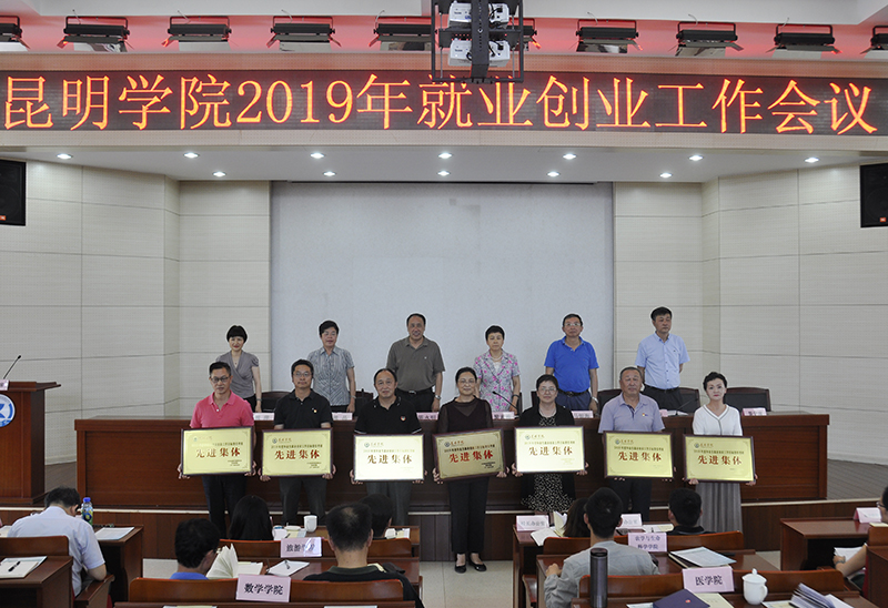 会议开始,熊晶副书记宣读了《yl23411永利集团官网关于表彰2018年就业创业工作先进集体的决定》,与会校领导为获得先进集体和单项奖的单位颁发了奖牌。
