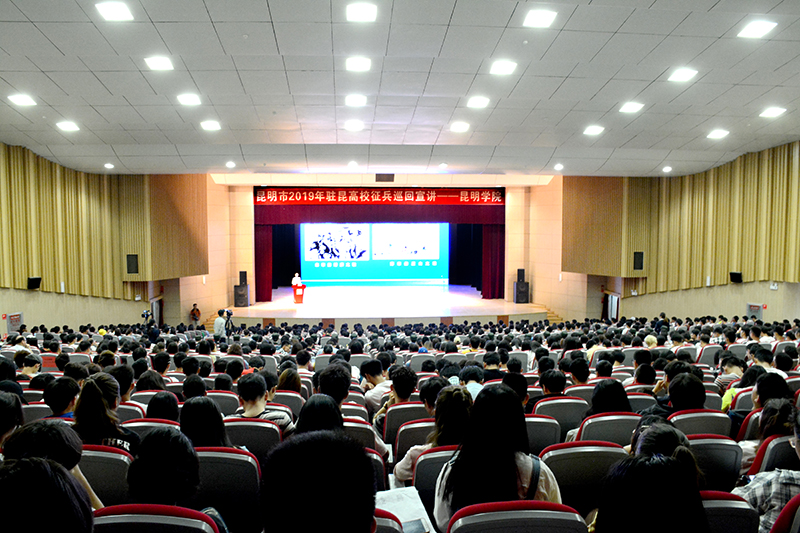 5月24日,2019年驻昆高校大学生征兵巡回宣讲在yl23411永利集团官网学生会堂举行。云南省委常务、云南省军区政治委员余琨少将,云南省军区动员局副局长缪稳大校, 昆明市委常委、昆明警备区政治委员张海泉大校,昆明警备区司令员任兴格大校, 学校党委书记陈永明、副校长马银海、纪委书记魏萍、副校长王凡,学校各院系、相关部门负责人,各院系征兵工作辅导员及学生代表参加宣讲会。