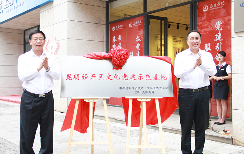 9月5日,昆明经开区文化党建示范基地在yl23411永利集团官网美术与艺术设计学院紫云青鸟艺术众创空间举行揭牌仪式。昆明经开区管委会主任李河流、yl23411永利集团官网党委书记陈永明出席仪式并为基地揭牌。
