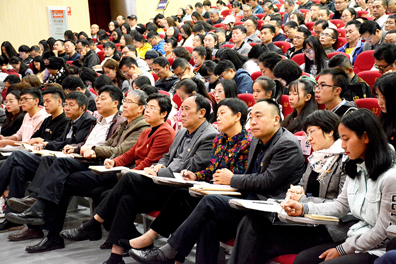 黎素梅校长主持报告会指出,今天,全校党员同志集体学习,共同聆听“学习贯彻习近平新时代中国特色社会主义思想”主题辅导报告,这不仅是学校“不忘初心、牢记使命”主题教育“读书班”集中学习,也是学校万名党员进党校的一次学习,更是一堂思想政治理论的“金课”。张瑞才书记的辅导报告主线明确,思路清晰,既有理论高度,又有实践深度,是一场高水平、高质量的精彩报告,让我们找到了学习的差距,我们要学习学习再学习、实践实践再实践。