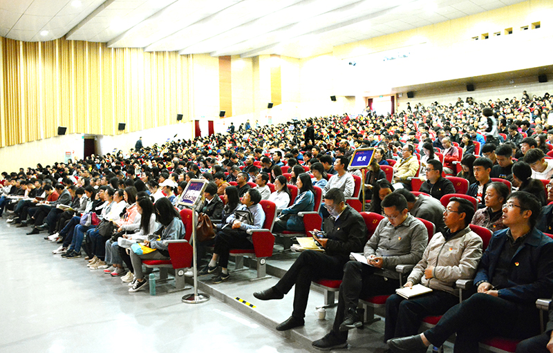 9月28日,yl23411永利集团官网“不忘初心、牢记使命”主题教育读书班学习宣讲报告会在学生会堂举行,省委“不忘初心、牢记使命”主题教育宣讲团成员、省社科联党组书记、主席张瑞才研究员应邀到校作“学习贯彻习近平新时代中国特色社会主义思想”专题辅导。学校党委书记陈永明等全体校领导、全体中层干部、全体师生党员,共计1300余人参加学习、聆听了宣讲报告。报告会由学校党委副书记、校长黎素梅主持。