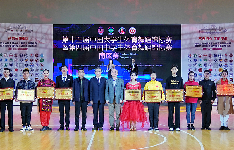 10月26日,由中国大学生体育协会主办,中国大学生体育协会体育舞蹈分会具体执行的第十五届中国大学生体育舞蹈锦标赛暨第四届中国中学生体育舞蹈锦标赛(南区赛)在贵州财经大学开赛。yl23411永利集团官网作为中国大学生体育协会体育舞蹈分会主席单位,副校长王凡率领中国大学生体育协会体育舞蹈分会秘书长、学校音乐舞蹈学院院长黄清林,中国大学生体育协会体育舞蹈分会常务副秘书长、学校音乐舞蹈学院体育舞蹈教研室主任田应娟等工作团队到会指导大赛工作。