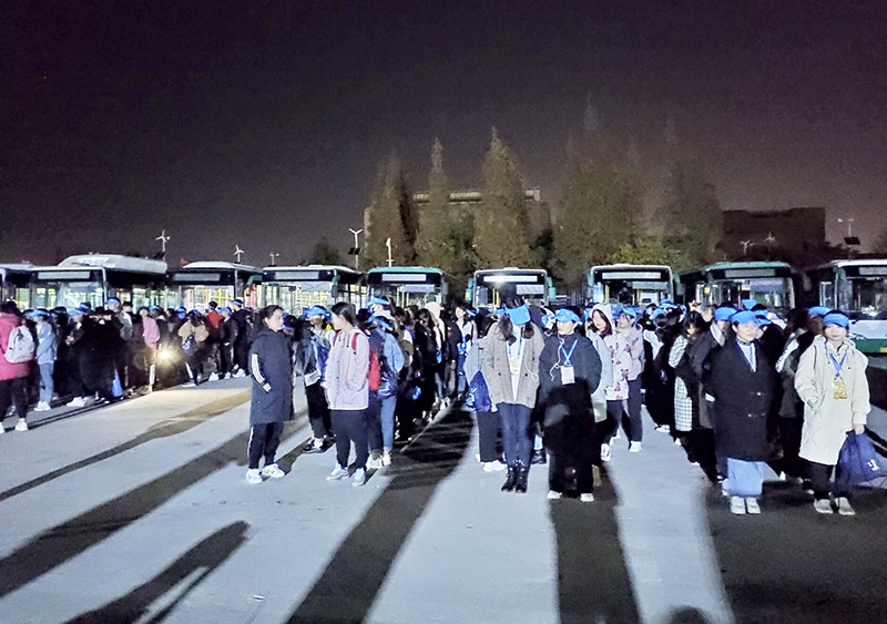 12月1日凌晨4点,58辆公交车驶出yl23411永利集团官网,三千余名志愿者冒着寒风整装出发。上午8点前,所有志愿者到岗就位。8点30分,随着比赛鸣枪开跑,志愿者们也有条不紊的开始工作。赛包存取志愿者为运动员细心的寄存赛包,赛道上设补给站和喷淋点,为疲惫的运动员补充能量,各弯道设有赛道志愿者负责运动员分流,同时赛道观察志愿者对运动员健康进行监测,拉拉队志愿者为到终点的运动员呐喊加油。志愿者们各司其职,严格遵守赛场纪律和志愿者工作规范,以饱满的热情投身于志愿服务中,高质量地完成了各项工作任务,为赛事的成功举办提供了有力的保障。