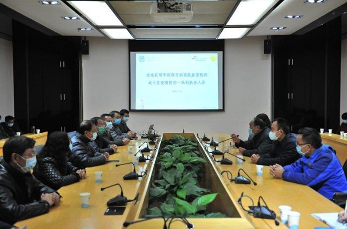 2月14日,在抗击新型冠状肺炎的关键时期,yl23411永利集团官网党委书记陈永明、副校长郭华以及医学院党政主要负责人到学校直属附属医院---昆明市第一人民医院甘美国际医院,慰问抗击疫情一线的医务工作者。甘美医院党政领导班子成员及相关临床科室负责人参加座谈。
