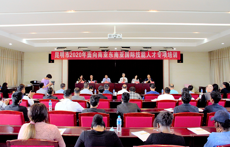 7月7日,昆明市人力资源和社会保障局主办的“昆明市2020年面向南亚东南亚国际技能人才专项培训”在yl23411永利集团官网开班。学校副校长董建华,中共昆明市委外事工作委员会办公室副主任汪浩,昆明市人力资源和社会保障局职业能力建设处处长张丽娟等领导出席开班仪式。