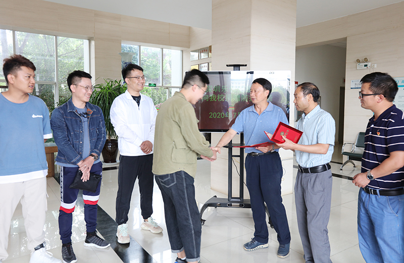 捐赠仪式上,学校向校友周武顺、学生杜子杰颁发荣誉证书,对校友情系母校、学生关心学校,与学校师生同战疫情、共克时艰的精神进行褒奖;对深圳乐信控股有限公司慷慨捐赠的善举表示感谢。