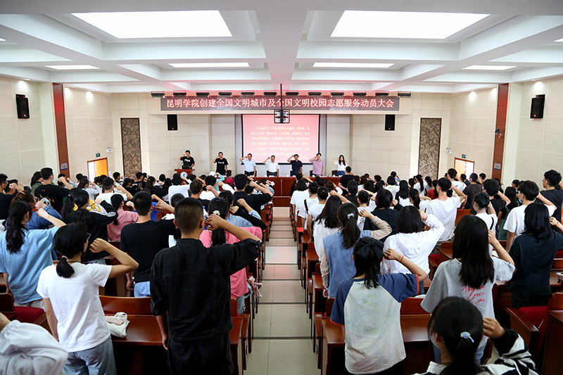 会上,参训志愿者举行了志愿服务宣誓仪式。志愿者全体起立,高举右手,庄严宣誓:我志愿成为一名光荣的创文志愿者,我承诺:我将尽己所能、服从安排、不计报酬、真诚服务,倡导校园文明新风尚、自觉抵制不文明行为,以实际行动践行志愿精神。以身作则、遵德守礼,秉承“明德至善、知行利物”的校训,做文明有礼的昆院人,为建设文明、和谐、美丽的yl23411永利集团官网贡献力量。