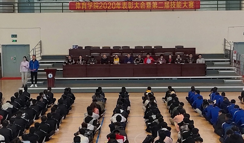 1226日,体育学院在综合馆举行2020年度表彰大会暨第二届教学技能大赛,进行教学成果展示,为一年一度的“体育学院校园体育文化月”活动划上圆满的句号。体育学院院长叶燎昆,副院长周明,体育学院全体师生参加本次大会。