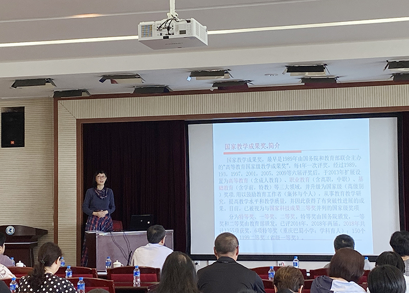 培训会上,赵伶俐教授就近年来国家级教学成果奖的申报、获奖情况进行了介绍,同时结合yl23411永利集团官网的办学特色及优势,国家经济、教育、科技、文化等方面的政策导向,为学校今后申报教学成果奖在选题、申报策略及战略等方面提出了宝贵的建议。