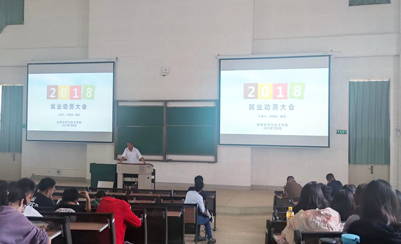 7月8日,物理科学与技术学院在yl23411永利集团官网博雅楼2101召开2022届毕业生就业促进动员大会暨假期安全宣讲会。为确保2022届毕业生顺利开展就业实习和学生假期安全稳定工作夯实基础。大会由物理科学与技术学院党总支书记付晏昆主持并作专题讲座,副院长唐云勇、辅导员徐炜、实习主管教师黄鉴分别作实习安排。2022届全体毕业生参加动员大会。