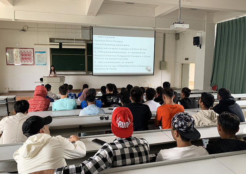 会上,国际学院外事科孔昭妮向留学生介绍《中华人民共和国出境和入境管理法》的重点条款及居留许可证办理手续,让入学新生知晓入境手续;学生科王婷向学生强调《yl23411永利集团官网留学生管理规定》《yl23411永利集团官网学生公寓管理规定》的一些重要内容,促使所有学生记住在校行为规范;教学科董丹晔给留学生再次强调上课纪律和《yl23411永利集团官网学生学习管理规定》中的重要内容,令同学们的学习方向不再迷茫;项目科蔡琳给留学生介绍了即将开展的“昆明市2021年面向南亚东南亚国际技能人才专项培训”项目的相关内容,大家对国际学院的全面能力素质教育由衷赞叹。
